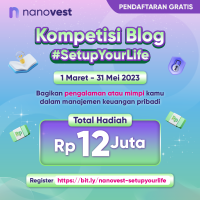 Kegiatan ini bertemakan: "Nanovest ingin mengajak bloggers untuk membagikan pengalaman dalam hal pengelolaan keuangan ke dalam bentuk cerita paling kreatif dan inspiratif demi mengajak generasi muda lainnya lebih melek dengan manajemen keuangan dan aset.". Oya, kegiatan ini tu Berhadiah! Serunya lagi, Kompetisi Blog #SetupYourLife Nanovest ini Online guys! Jadi bisa irit di ongkos banget karena nggak perlu kemana-mana buat ikutan kegiatan ini! 🎉 🌟